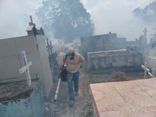 Esta actividad se realiza todos los años en los cementerios, previo a la fecha del 2 de noviembre, día en que se honran a los difuntos y como una medida para controlar y reducir la cantidad de mosquitos que puedan existir.