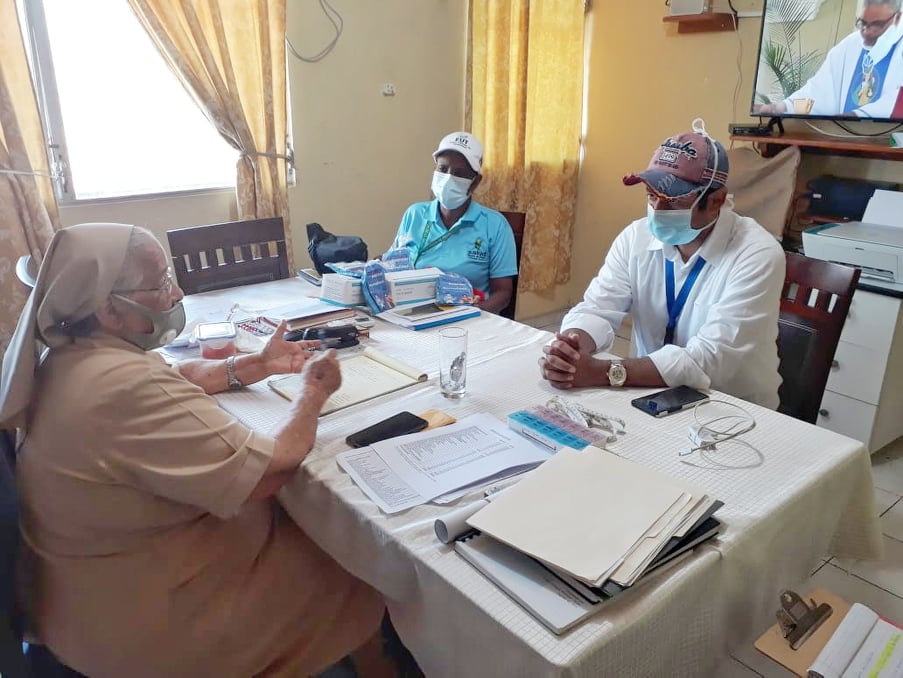 En Panamá Oeste Equipo de Promoción de la Salud, junto con el equipo multidisciplinario conformado por Salud de adulto, asesoría Legal, Salud Mental, Trabajo Social, Bioseguridad y el Ministerio de desarrollo Social (MIDES) realizó visita a Hogar San José de Malambo para evaluar las condiciones de dichos albergues y las medidas en cuanto COVID-19, se entregaron 100 mascarillas desechables. 50 mascarillas de tela y 50 hojas con material informativo de recomendaciones para evitar el contagio.