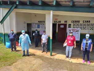El Equipo Unificado de Trazabilidad (EUT) del Centro de Salud El Espino realizó seguimiento y control de pacientes positivos COVID-19, en La Comunidad de Cerro Cama, corregimiento de Amador, distrito de La Chorrera, con distribución de volantes sobre medidas de bioseguridad, pruebas por hisopados a personas con síntomas y/o sospechosas a quienes se les entregó bolsas con alimentos.