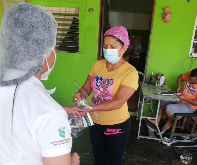 De igual manera, Promoción de la Salud, realiza operativos casa por casa vigilando que la población cumpla con las medidas de bioseguridad y entrega pantallas faciales.