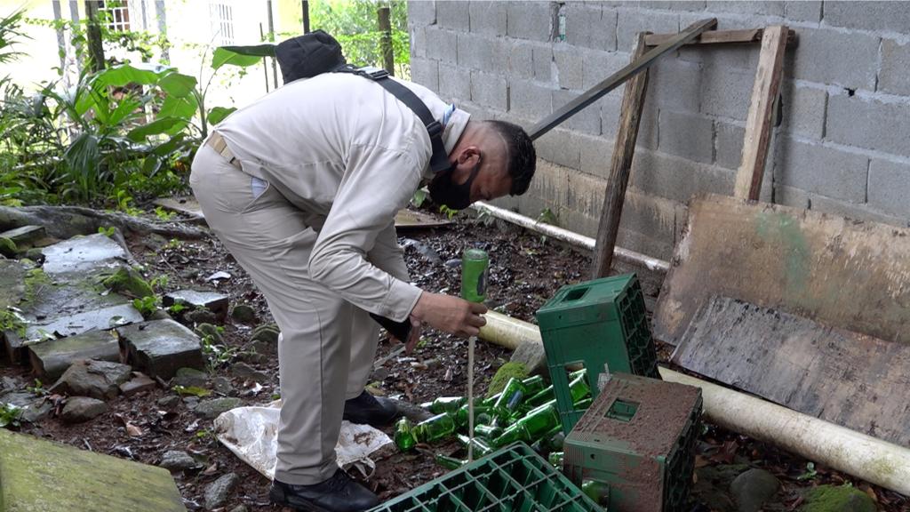 Otra de las intervenciones en la comunidad de Rancho Café fue una jornada de verificación para la eliminación de criaderos por el equipo de vectores del Centro de Salud 24 de Diciembre.