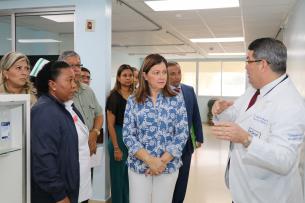 La ministra estuvo acompañada por su equipo de trabajo entre ellos el Director Nacional de Provisión de Servicios de Salud, Agustín Sánchez y fueron recibidos por el Director Médico del hospital, doctor Rafael De Gracia, quien explicó cómo ha evolucionado el nosocomio luego de haber estado 17 meses paralizado por mejoras en los ductos del acondicionador de aire.