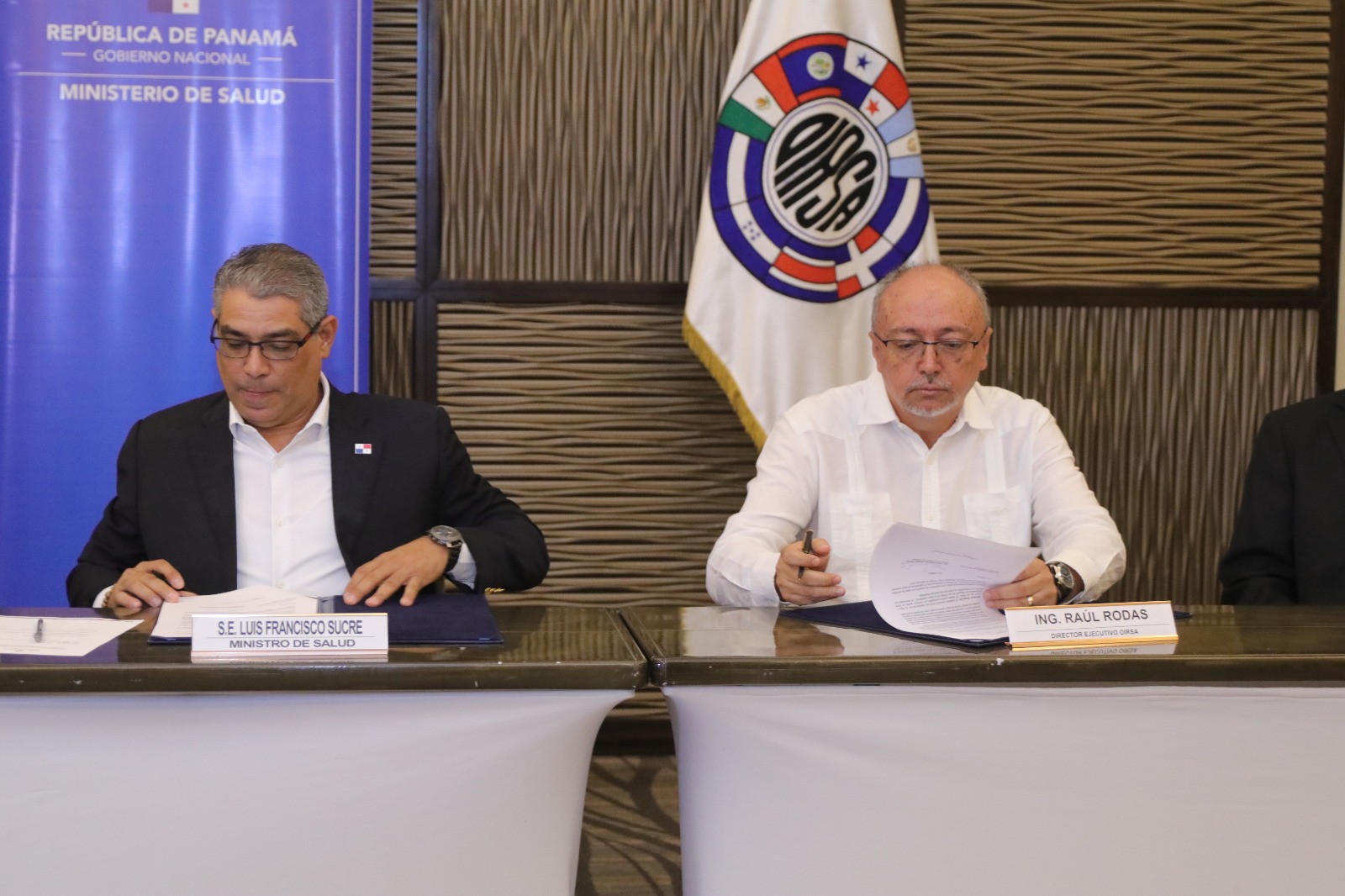 El ministro de Salud, Luis Francisco Sucre y el director ejecutivo de Servicios Cuarentenarios del Organismo Internacional Regional de Sanidad Agropecuaria (OIRSA), Raúl Rodas, se suscribieron este jueves un acuerdo para agilizar el pago, a través de la agencia regional, de los inspectores de Plantas de sacrificio de carne bovina en Panamá.