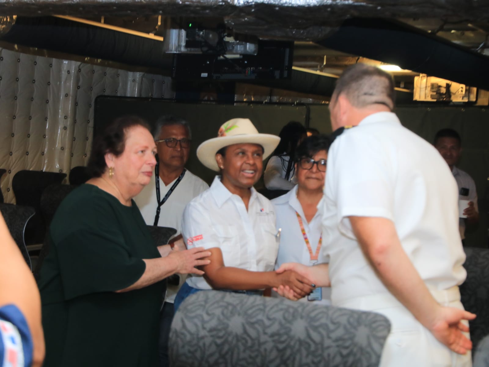 Posteriormente la viceministra y la embajadora se trasladaron al puerto de Almirante donde se encuentra el buque Burlington y luego al hospital de Almirante para visitar las instalaciones donde continuará la gira médica en atención a la población del 15 al 17 de agosto y por último estuvieron en el estadio de Almirante donde se realizó un acto protocolar relacionado a esta gira en la provincia.