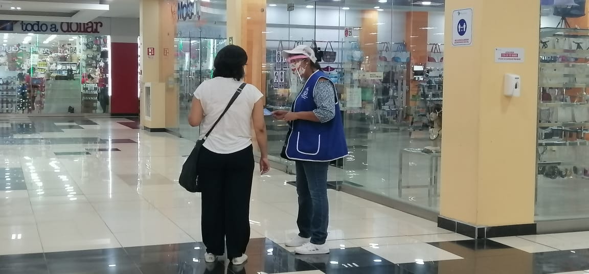 Los promotores recordaron a la población la importancia del lavado de manos con agua y jabón, el uso de la mascarilla, el ingreso de una sola persona por familia según género a los lugares de compras, así como el mantener la distancia al momento de hacer filas.