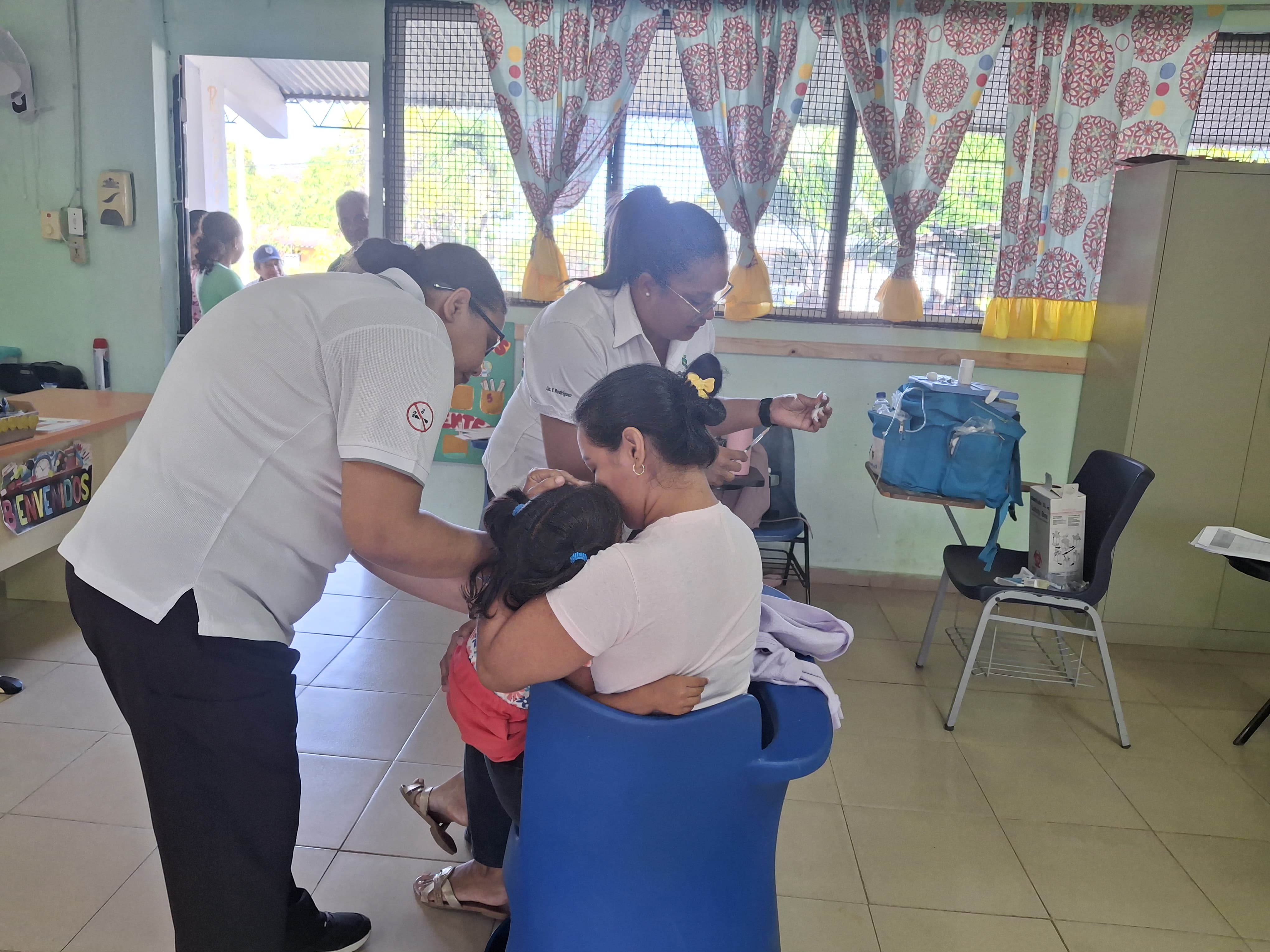 Para apoyar esta actividad, personal del Centro de Salud Edelmira Luna de Parita y del Centro de Salud de Santa María participan en las jornadas médicas, ofertando además vacunación y la actualización de los esquemas de vacunación a la población como parte de las acciones de prevención y promoción de la salud.