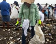 Una gran cantidad de bolsas con desechos plástico y muchas llantas de carros, fueron sacadas de la playa, a nuestra bahía llega al año más de 175 mil toneladas de basura, que además de constituir una amenaza ambiental, supone una amenaza real a la salud de todos los ciudadanos.