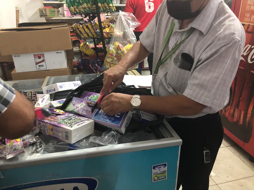 Haciendo cumplir la ley 13 del 24 de enero de 2008 referidas a la prohibición del cigarrillo el equipo de inspectores realizaron el decomiso y destrucción de gran cantidad de cigarrillos de contrabando y otros productos derivados del tabaco.